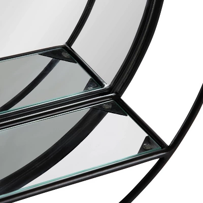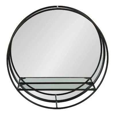 Create a unique wall display and decorate your home with the Kei Modern Round Accent Mirror. Not only is it a much-needed modern accent piece, but with a bit of imagination, this mirrored shelf has the potential to add a real focal point to your home. The Kei Mirror has a high-quality, raw iron metal finish, creating a beautiful industrial statement. It also features a trendy round shape that blends in well with spaces such as your living room, dining room, or entryway. The built-in glass shelf is measured with dimensions of 14.5″ x 4″, making it the perfect display area for small keepsakes, succulents, or photos. Kate and Laurel recommend utilizing this shelf’s compact design by pairing it with other modern decorative items in your home, like a console table or desk. It mounts easily on the wall or above your console table with the keyhole hangers securely attached to the back. We also recommend purchasing this beautiful wall mirror in multiples to create a symmetrical display area or an industrial double vanity.