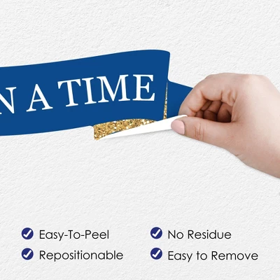 Big Dot of Happiness Royal Prince Charming Wall Decals includes 1 sheet of 20 assorted vinyl wall art stickers that you can arrange to add a special touch to your home decor. Wall Decal sheet measures 50” wide by 16.5” tall. Pieces range in size from 15 x 9.5” to 2.25 x 3.25”. Effortless Decor: The Castle and Carriage wall stickers are an easy solution for bringing in some added charm to your space within minutes! You can use the wall decals for nursery and kids’ rooms, impressive photo backdrops, or as easy decor at your Baby Shower or Birthday Party. Easy to Use: Royal Prince Charming vinyl decals are easy-to-peel and repositionable. Wall art stickers will adhere to various surfaces including painted walls, plastic, wood, glass, and metal. To use, make sure your surface is clean and dry. Slowly peel the sticker from the paper to avoid tearing and smooth over with your hand. They are also easy to remove, leaving no residue. High-Quality Supply: Royal Prince Charming wall stickers come with a quality matte finish and vibrant colors. They are printed on water-resistant professional quality material and will arrive on one full sheet rolled. Made In The USA: Castle and carriage Wall Decals are designed and manufactured at our Wisconsin facility using materials that are Made in the USA. Royal Prince Charming Vinyl Stickers uses a No-Mess Glitter Print: Our vinyl stickers are designed with a printed image of glitter, eliminating glitter flake while maximizing bling effect!