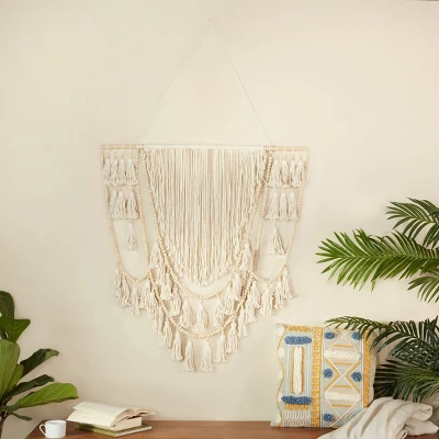 Cotton Macrame Weaved Intricately Wall Decor With Beaded Fringe Tassels – Olivia & May