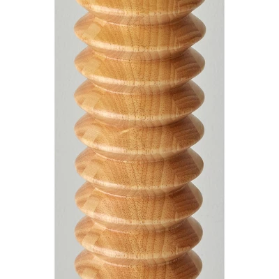 With a bold silhouette and stylish blend of materials, the Judith floor lamp is the perfect accompaniment to contemporary or transitional décor. The lamp features a black metal square base with clean lines that supports a matching black metal stem. For a striking look with contrasting colors and materials, a tall natural wood decorative piece adorns the stem. Topping the lamp is a textured cream colored drum shade that softly diffuses the light from a 150W bulb. Operated by a 3-way rotary switch, the brightness can be set to low, medium, or high to always suit your lighting needs. Complete your decorative scheme with the coordinating Judith table lamp.