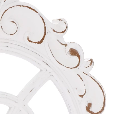 Bring life and style to your home decor with this wood baroque window wall decoration featured in a distressed white finish to give it an authentic vintage feel. Handcrafted using solid and manufactured wood, this piece is quite durable and will last a long time and improve your home’s visual appeal without any worries. Adding personality to your walls, this arched window has an open frame allowing your beautiful wall color to peek through the window panes. The arched wood window is perfect for displaying in your entry, hall, family room, bedroom, or office as a focal point or as a complement to your other decor. Though large in size, this wood window decor is still lightweight enough for easy mounting or simply prop it against a wall for a more casual look.