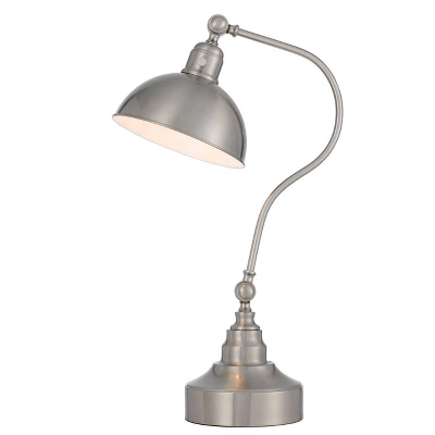 Cal Lighting Industrial adjustable metal down bridge desk lamp with half dome metal shade. This 25″ tall durable metal lamp is in Brushed Steel finish. This lamp features and adjustable head, adjustable arm, and a weighted base for added stability. This lamp uses a 60 watt bulb (not included) with an On/Off rotary switch. Add this Transitional styled floor lamp to your Livingroom, dining room, family room, bedroom, or office.