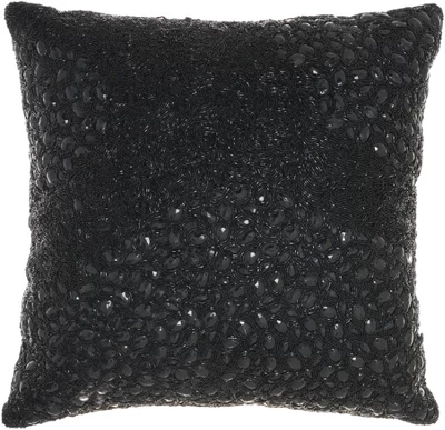 This glam throw pillow from Mina Victory Home Accents is dazzling, creative, and positively bold, and it easily dresses up the look of any room. The contemporary design displays a swirling bead and crystal pattern that reflects changing light beautifully. Handmade polyester front cover and cotton back cover; polyester insert included. Pattern appears on face only.
