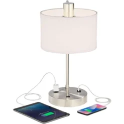 360 Lighting Colby Nickel USB Desk Lamps Set Of 2 With Smart Socket