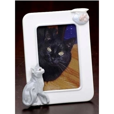Make your happy memories last longer with these fashionable photo frames! Offering a perfect space for your lovely photographs, this accent comes embellished with a cute little cat and a fish, perched around the frame. Either as photo displays or as centerpieces, this pack of splendid pieces will be a guaranteed hit in your home.Product Features:White cat gazing longingly at a fishbowl photo frameComes with a self-supporting bracket on the backDesigned and created with the finest quality porcelainPainting produces the warmth expressed in every unique selectionComes with the soft hues that make Valencia finish so delicateRecommended for indoor decorative use onlyDimensions: 7.75″H x 6.5″W x 1″DPhoto: 4″ high x 6″ wideMaterial(s): porcelain/glassPack includes 12 of the item shown