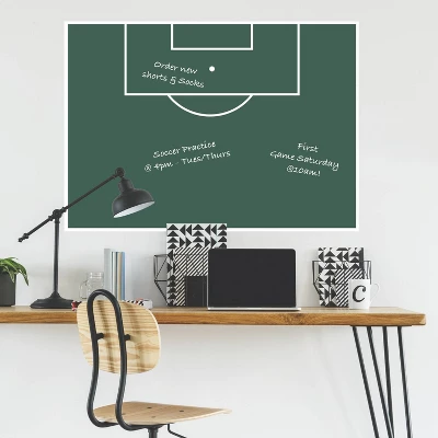Planning out the perfect formation? We’ve got you covered. This giant peel and stick soccer field dry erase wall decal is the solution to your coaching needs! Installation is as simple as peel, stick, done! It’s game time! Decal size(s) – 36.5 inches x 26.125 inches. Coms with Dry Erase pen.; Easy to apply – just peel and stick; Applies to any smooth, clean, flat surface; product may not adhere to unclean, textured, recently painted, or nonstick surfaces; Removable and repositionable with no sticky residue left behind; Printed on a safe, high quality material that is free of harmful chemicals like phthalates and lead; Reuse from one space to the next; Perfect for both renters and homeowners; ; .
