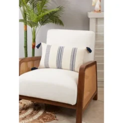 12″x20″ Oversize Textured Striped Tassel Down Filled Lumbar Throw Pillow Navy Blue – Saro Lifestyle