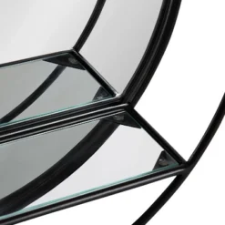 19″ Diameter Kei Modern Round Accent Mirror With Shelf Black – Kate & Laurel All Things Decor