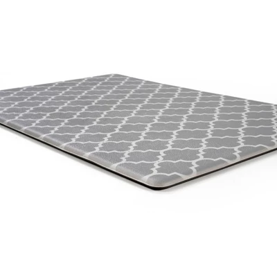 Bring this modern trellis anti-fatigue Mat to any place in your home, from the entryway to the bathroom, on to the kitchen and laundry room. This Mat makes great use for high foot traffic areas without breaking a sweat. The Rubber backing enables it to stay in place keep durable for your usage.